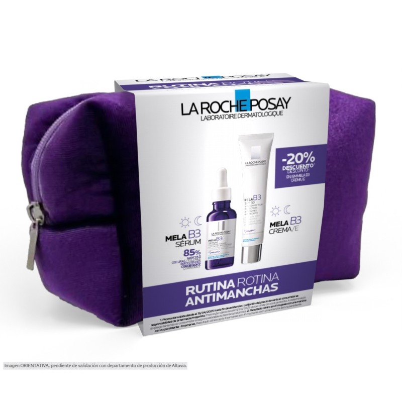 El pack la roche-posay mela b3, combina dos tratamientos dermatológicos diseñados para combatir la hiperpigmentación y mejorar visiblemente la uniformidad del tono de la piel. El sérum mela b3 (30 ml) actúa intensamente sobre las manchas oscuras gracias a su innovadora fórmula con melasyl™, niacinamida al 10% y ácido hialurónico, ayudando a reducir su tamaño y prevenir su reaparición, incluso en las pieles más sensibles. La crema mela b3 spf30 (40 ml) complementa la acción del sérum con una hidratación ligera y protección solar, para prevenir nuevas manchas causadas por la exposición uv, al mismo tiempo que calma y mejora la textura de la piel.