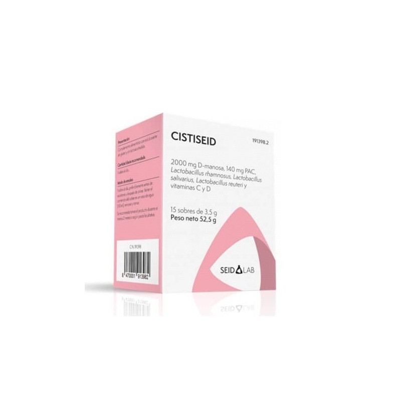 Complemento alimenticio a base de D-manosa, extracto de arándanos, fermentos lácticos vivos, vitaminas C y D que es para frebar los síntomas de infección de las vías urinarias inferiores MODO DE EMPLEO Un sobre al día, preferiblemente antes de acostarse y después de orinar. Verter el contenido del sobre en un vaso de agua (150 ml), remover y tomar. PRECAUCIONES Y ADVERTENCIAS Los complementos alimenticios no deben utilizarse como sustitutos de una alimentación variada y equilibrada y un modo de vida sano. No superar la dosis diaria expresamente recomendada. Mantener fuera del alcance de los niños más pequeños. Un consumo excesivo puede tener efectos laxantes. USO EN PACIENTES CON INTOLERANCIA ALIMENTARIA Este producto lo puede tomar una persona celíaca, alérgica/intolerante al huevo, alérgica a la proteína de leche o intolerante a la lactosa.