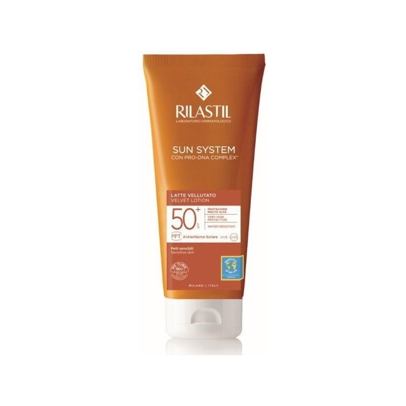 Loción velvet suavizante, de fácil aplicación con protección de alto espectro de las radiaciones UVB-UVA y de acción antioxidante. Previene la aparición de quemaduras, manchas y eritemas solares. Tecnología exclusiva Pro-DNA Complex.