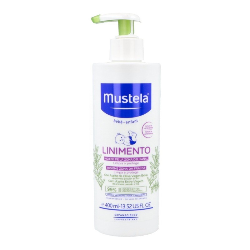 El linimento de Mustela limpia suavemente el culito del bebé desde su nacimiento*. También protege su piel de los daños causados por la humedad y el roce de los pañales.