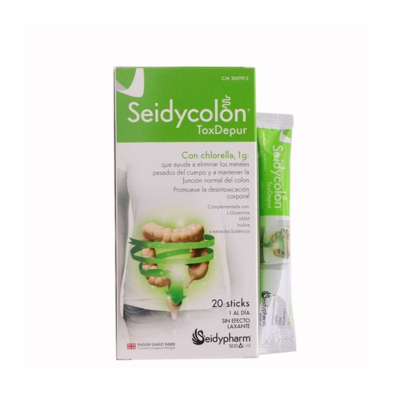 Seidycolon toxdepur es un complemento alimenticio en formato sticks bebibles, formulado para apoyar los procesos naturales de depuración del organismo y contribuir al equilibrio de la microflora intestinal. Sus ingredientes de origen vegetal han sido seleccionados por su capacidad para neutralizar y eliminar compuestos tóxicos, facilitar la digestión y promover una función intestinal habitual, adaptándose a las necesidades de quienes buscan un aporte de bienestar digestivo en su día a día.